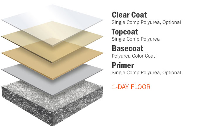 Our floor coating systems are always installed by Penntek-certified professionals who are trained to finish your new polyurea floor in as little as a single day!